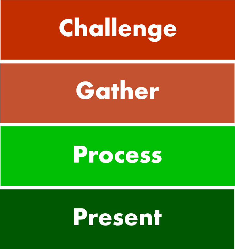 In their simplest form, all projects have four phases. The first phase sets the scenario and poses the challenge. The second phase involves gathering data and information. The third phase involves processing the information and data, and using higher-order thinking skills such as analysis, evaluation, synthesis etc. The final phase involves reporting.