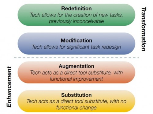 Watch this video in which Dr Ruben Puentedura explains the SAMR model which he developed: